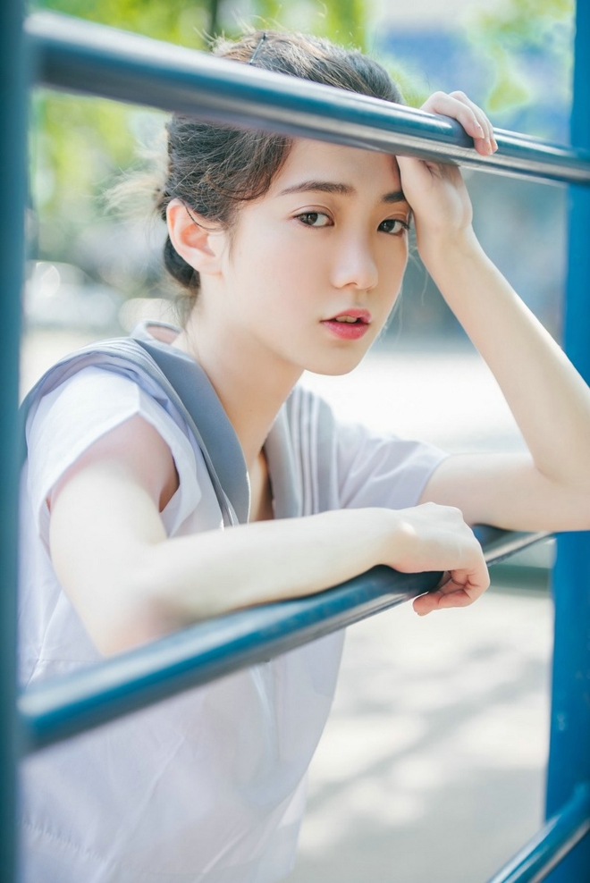 清纯漂亮美女超短裙黑丝过膝袜阳光俏皮唯美写真
