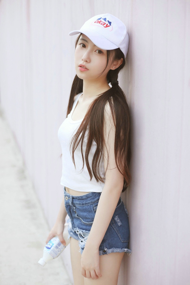 戴鸭舌帽的校园牛仔短裤美腿女孩写真