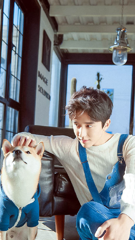 张新成蓝色牛仔背带裤清新阳光美少年写真