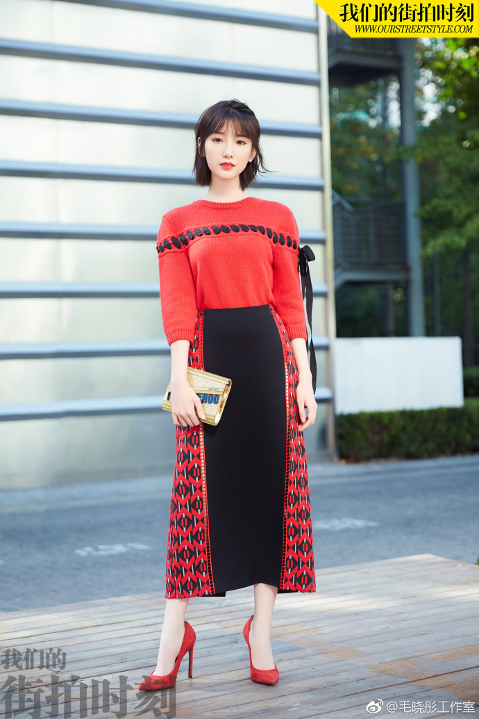 毛晓彤寒冬中的的一抹红最新街拍写真