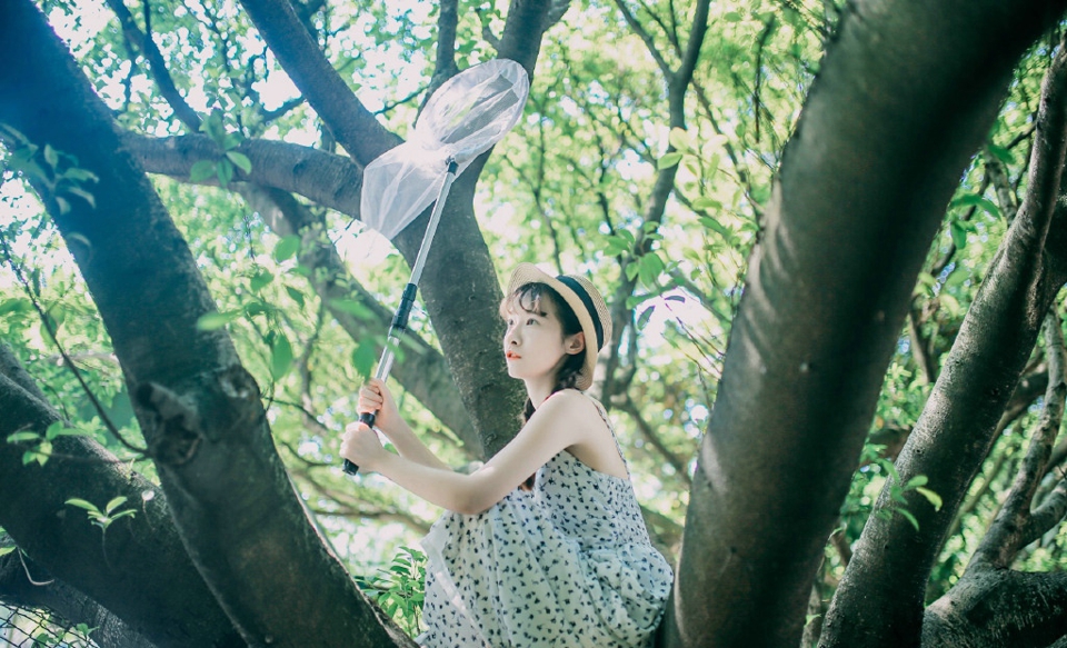 明媚阳光下的白嫩少女甜美俏皮
