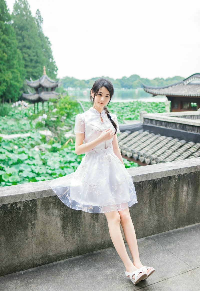 荷叶边的民国风连衣裙麻花辫少女