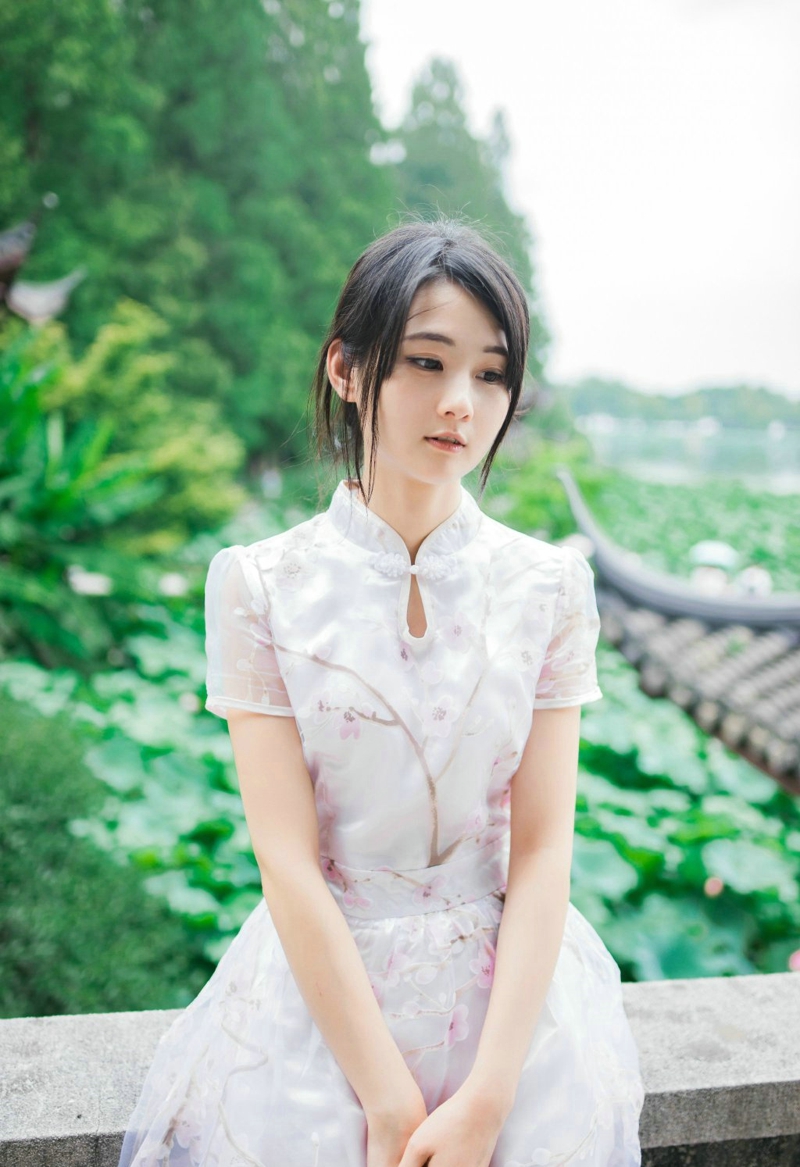 荷叶边的民国风连衣裙麻花辫少女