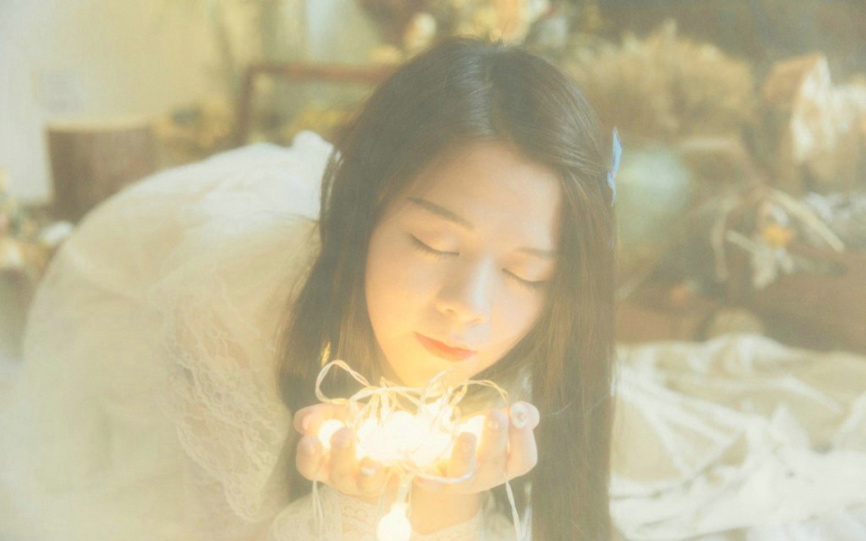 花房内的美丽少女白纱纯净可人