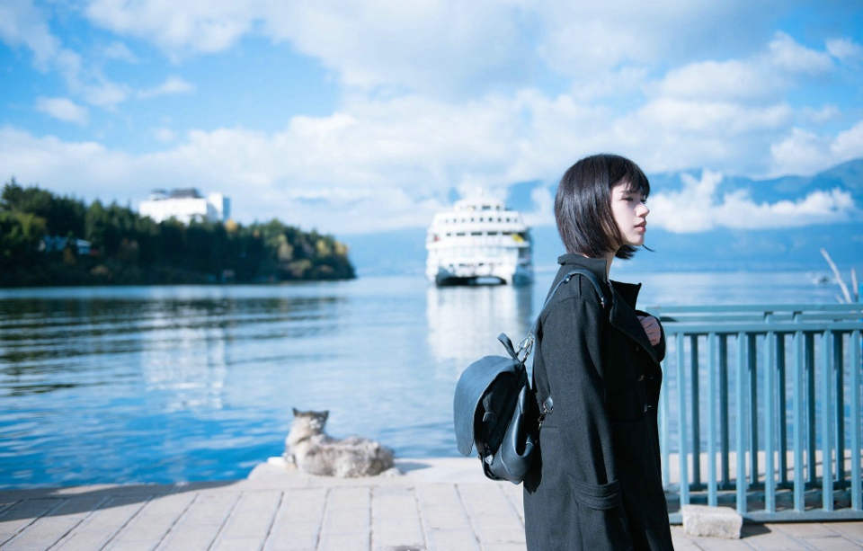短发美女旅拍阳光下白嫩肌肤