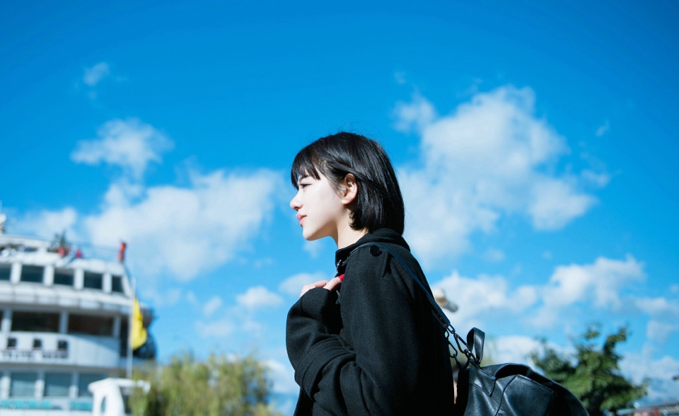 短发美女旅拍阳光下白嫩肌肤