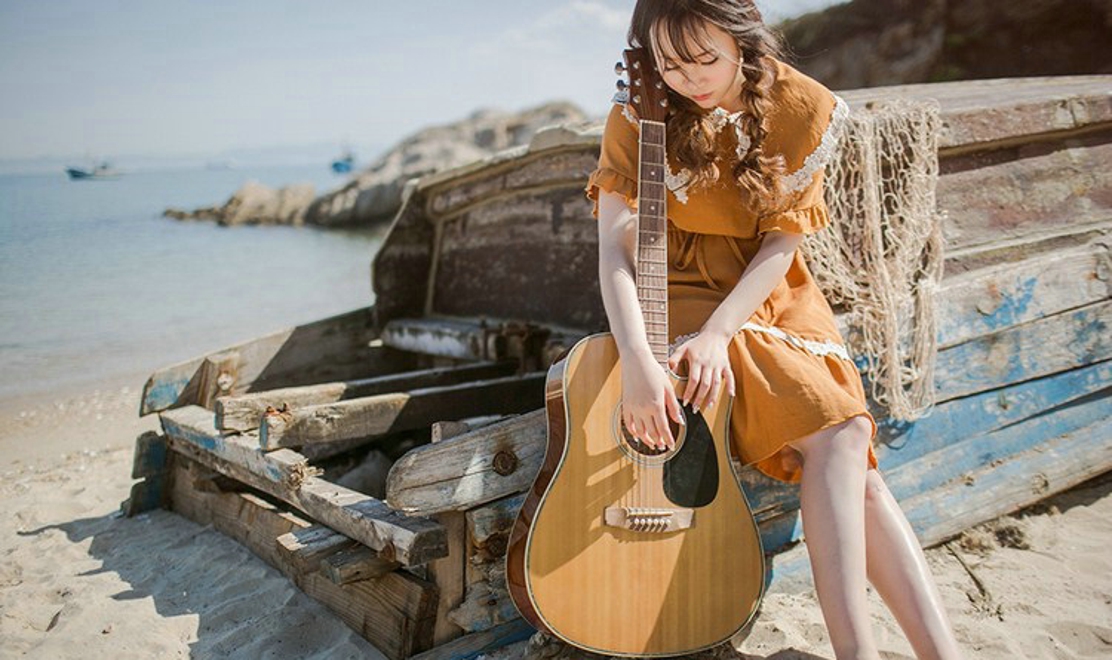 清纯娇嫩吉他少女海边阳光唯美俏皮写真