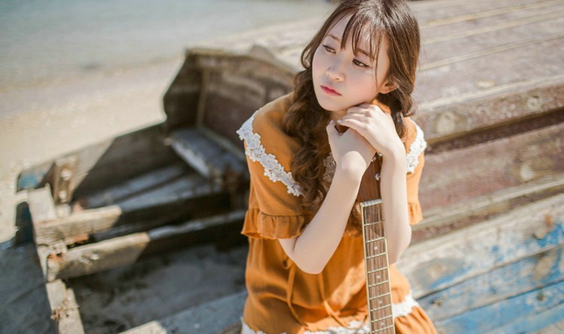 清纯娇嫩吉他少女海边阳光唯美俏皮写真