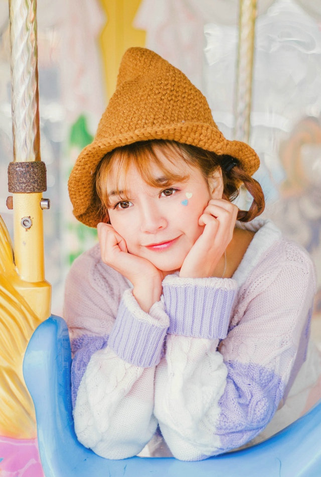 草帽清纯美女红白格子连衣裙户外靓丽写真