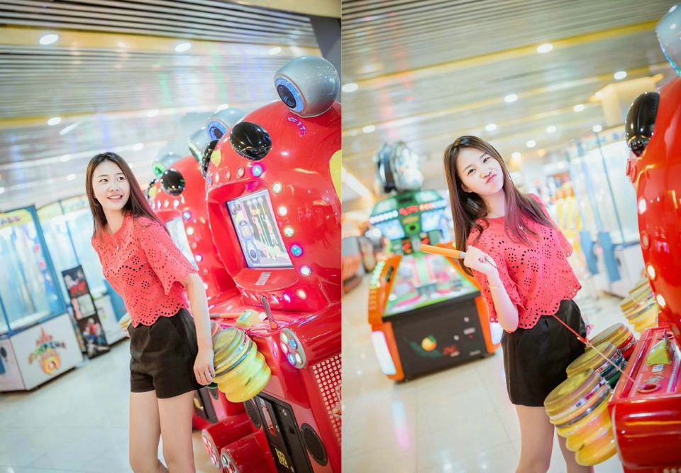 电玩城内的马尾青春美少女可爱活泼