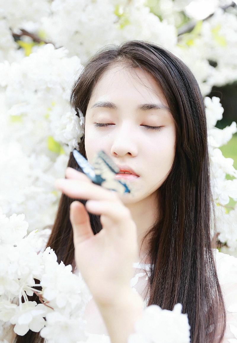 花树下的白裙气质美女
