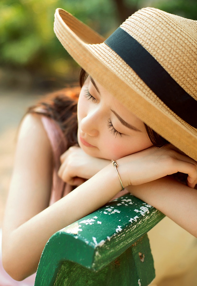 清迈美女粉色露肩裙遇见阳光迎风笑脸写真