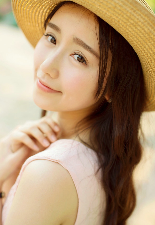 清迈美女粉色露肩裙遇见阳光迎风笑脸写真