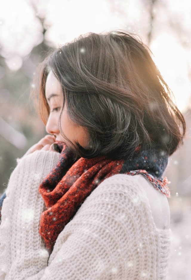 又一年大雪纷飞短发美女撑伞漫步楚楚动人