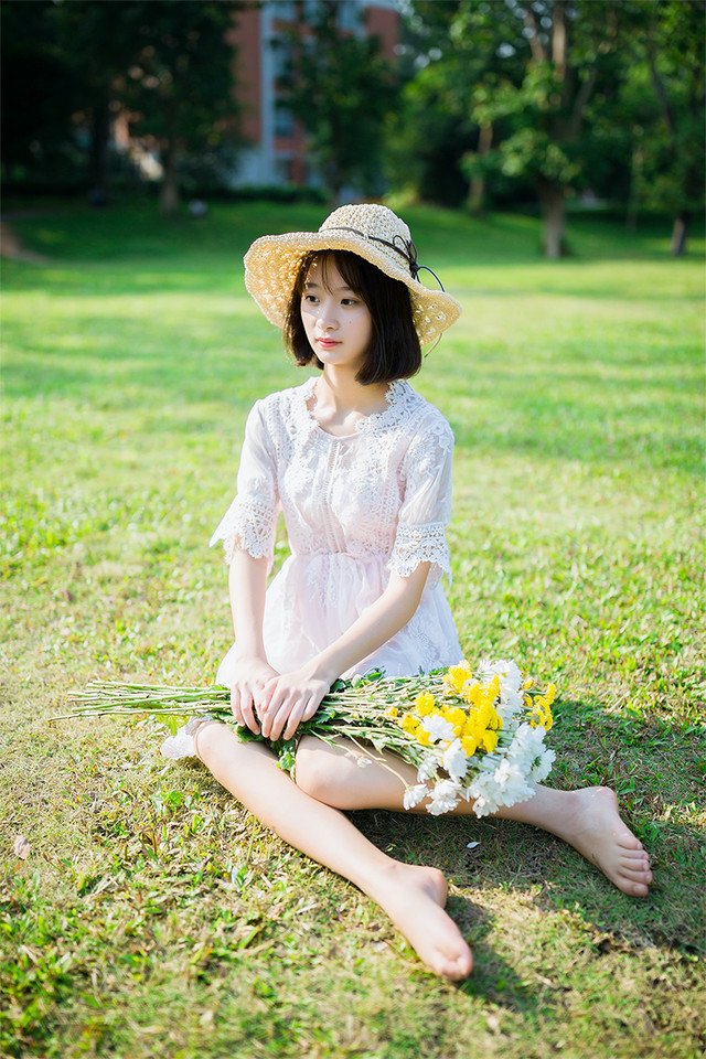 夏日阳光女孩蕾丝连衣裙捧花甜美暖意十足